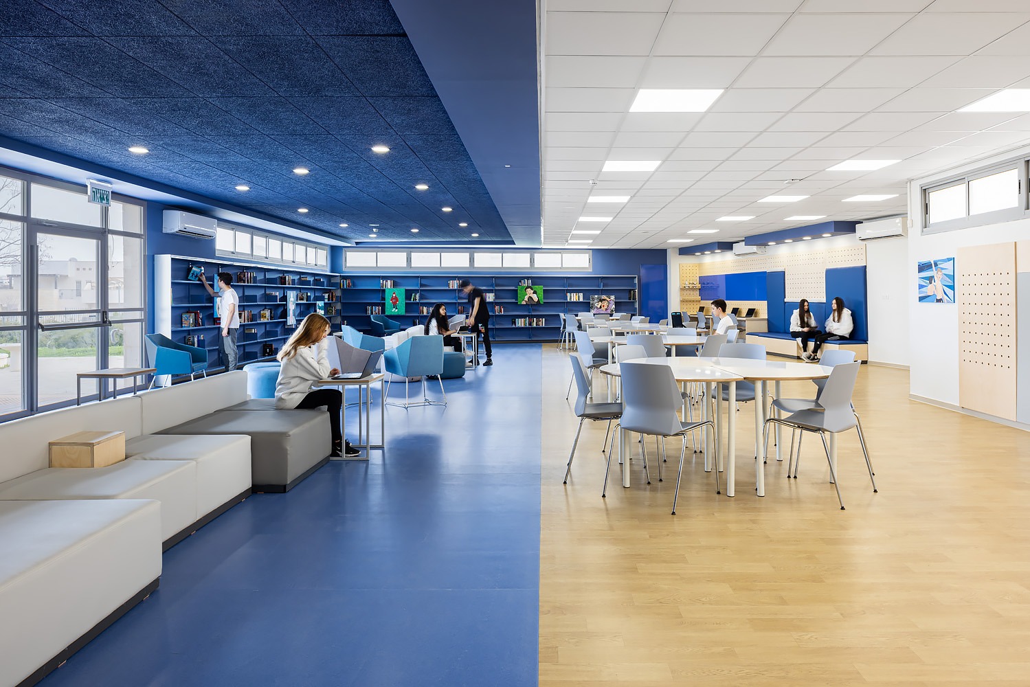 בשטח של כ- 400 מ"ר נוצרו שלושה אזורים מרכזיים ומוגדרים: שטח לישיבה לא פורמאלית המזמנת ישיבה של יחידים או התכנסות בקבוצות, שטח להתכנסות בקבוצות ולמידה פורנטילית ושטח המוגדר לעבודה מלכלכת "מייקר" לביצוע והוצאה לפועל של רעיונות תאורטיים פרי תהליכי הלמידה. שטח ה"מייקרים" הוא בעצם בית מלאכה המאגד בתוכו חומרים וכלים לעבודה. בכל שלושת האזורים מפוזרים עולמות הידע הן בצורתם המסורתית כספרים והן כידע דיגיטלי. האזורים המוגדרים באמצעות צבע וחומר, מהווים אזורים גמישים המאפשרים מעברים טבעיים פיסיים ורעיוניים כאחד.