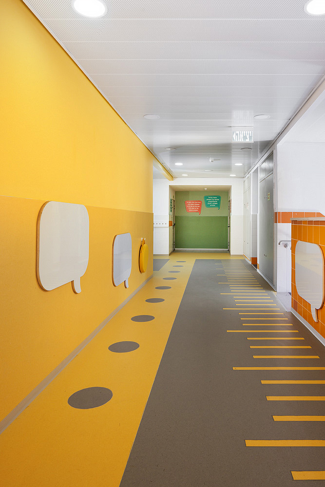 משני קצבות המסדרון יש שני מרחבים שנוצלו לפונקציות נוספות המאפשרות משחק ורגיעה באמצעות דוכני ממכר, במות ונישות ישיבה. המרחב הצבעוני משדר מצד אחד רוגע ושלווה ומצד שני מעוררת לפעולה ותנועה. על מנת להתאים ולדייק את הנראות כך שתתאים למנעד רחב של גילאים, נספו צורות מנימליסטית של האוביקטים בתוך המרחב. .
